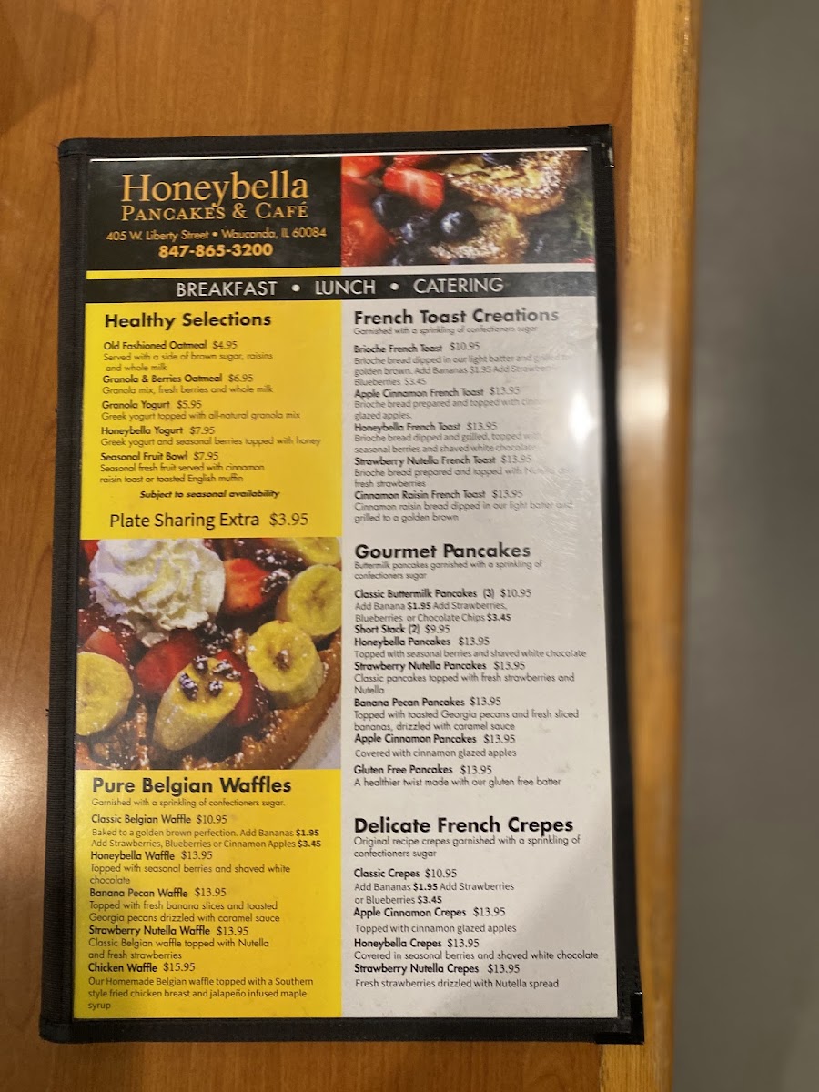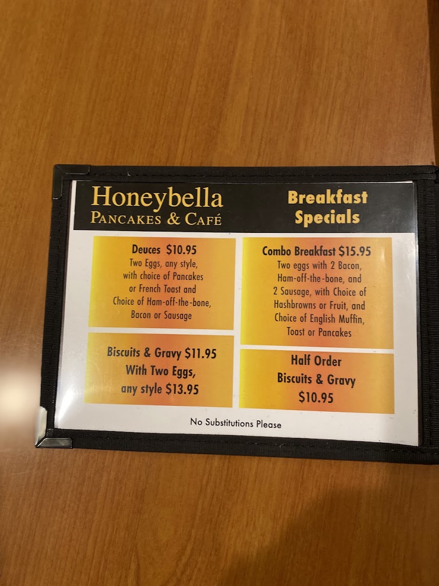 Honeybella Pancakes & Cafe Menu