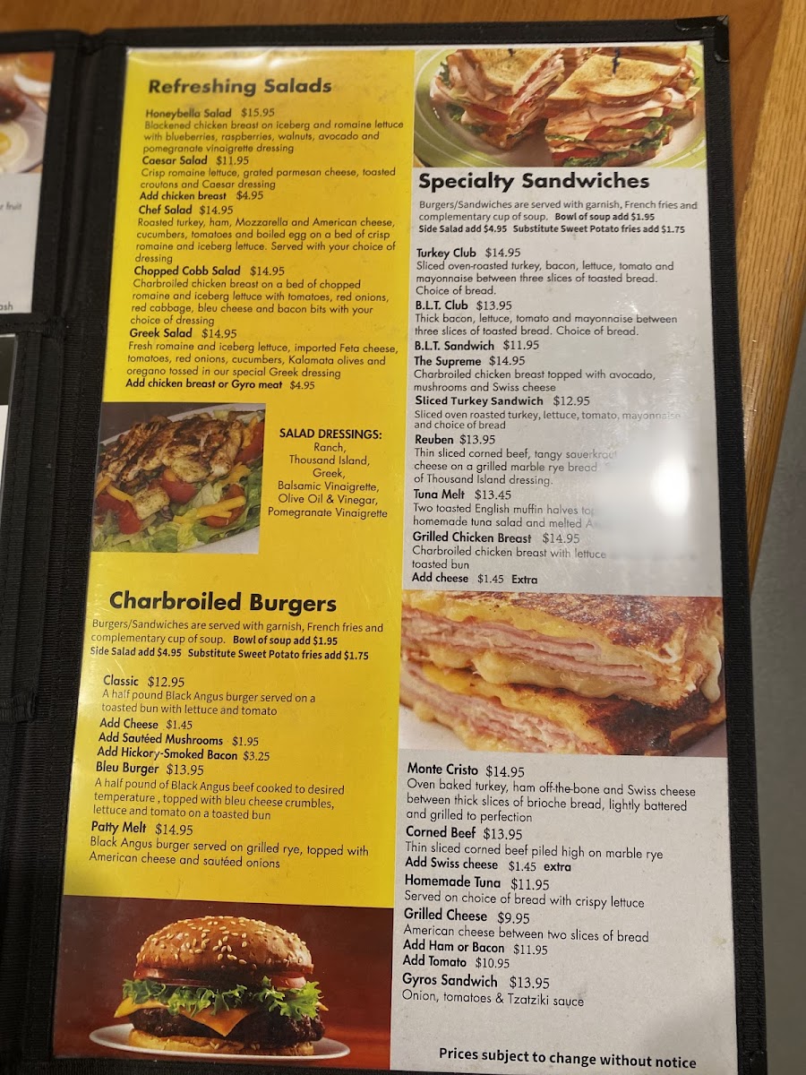The menu at Honeybella Pancakes & Cafe offers a comforting selection of classic café fare, focusing on hearty breakfasts and casual meals that feel like a warm start to the day. You’ll find a variety of satisfying options ranging from fluffy pancakes and skillets to traditional favorites like Eggs Benedict and Chicken and Waffles. These dishes invite a leisurely morning or a relaxed weekend brunch, fitting well with the cozy and friendly atmosphere the café provides.